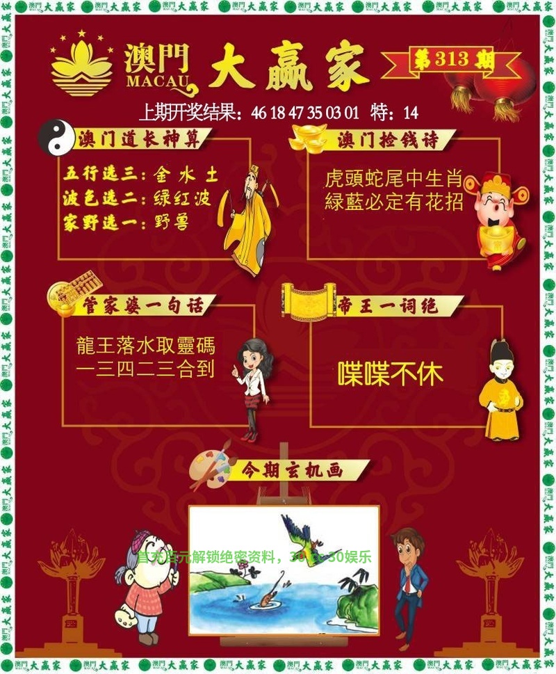 | 315期:琴棋书画【画书棋】开:虎04准 |